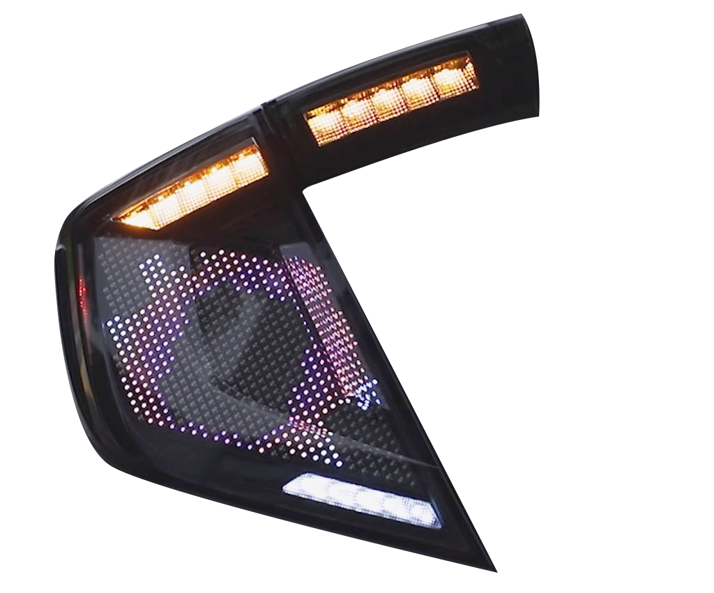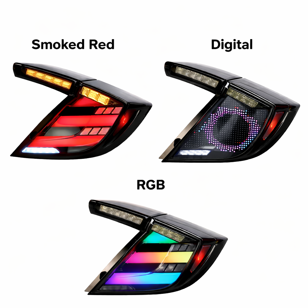 For Civic owners, these are more than just lights; they're a projection of personality. Featuring aggressive "smoked" lenses that blend seamlessly with the black-and-white image, these taillights offer a sharp, digital sequential turn signal that cuts through traffic. The startup animation mimics a system check on a fighter jet.