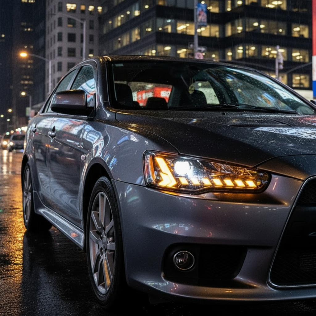 PrismBeam | 2008-2018 Mitsubishi Lancer / EVO LED Projector Headlights Set Clear Sequential