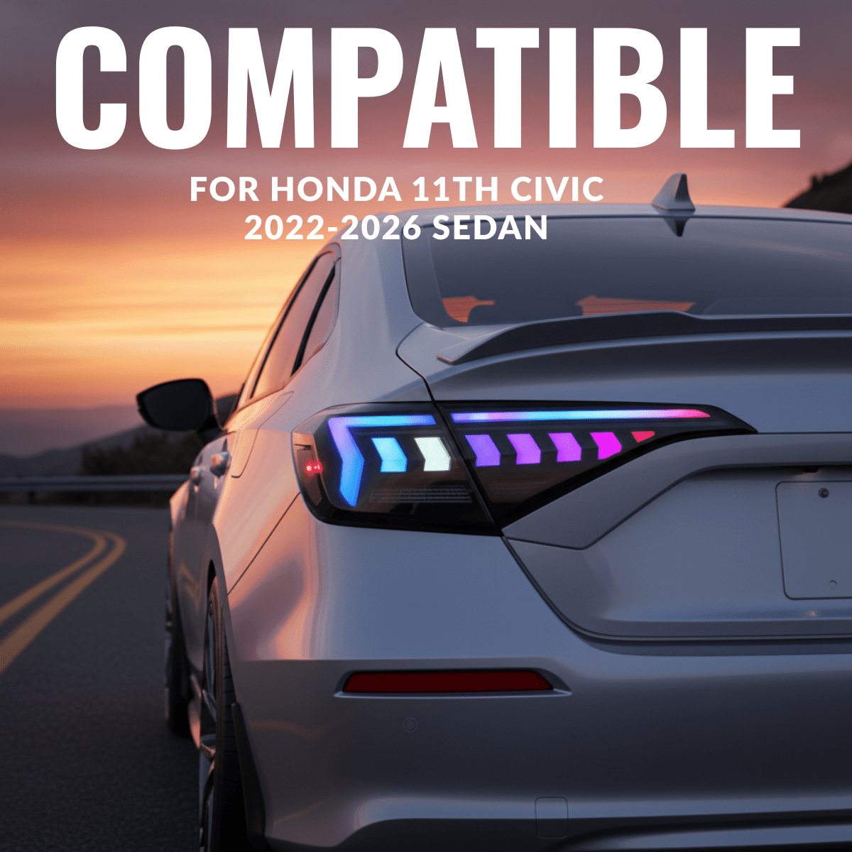 A direct bolt-in replacement for the factory tail lights on your 2022–2026 Honda Civic Sedan. Uses the OE mounting points and factory connector — no cutting, no splicing, zero error codes. Built-in CANBUS decoder eliminates hyper-flash and dashboard warning lights across all 11th Gen trims.