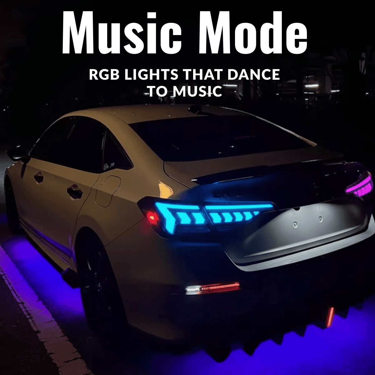 Switch seamlessly between a clean OEM-style white for daily driving and a bold RGB show mode for nights and car meets. Designed to adapt to your environment, this system gives you full control — subtle when you need it, striking when you want it.(For functional demonstration only, not this model of vehicle lamp)