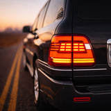 The smoked finish adds depth and contrast to the rear of the LX470, giving it a more refined and contemporary appearance without overpowering the vehicle’s original luxury SUV design. It’s a subtle upgrade that enhances both stock and lightly modified builds.