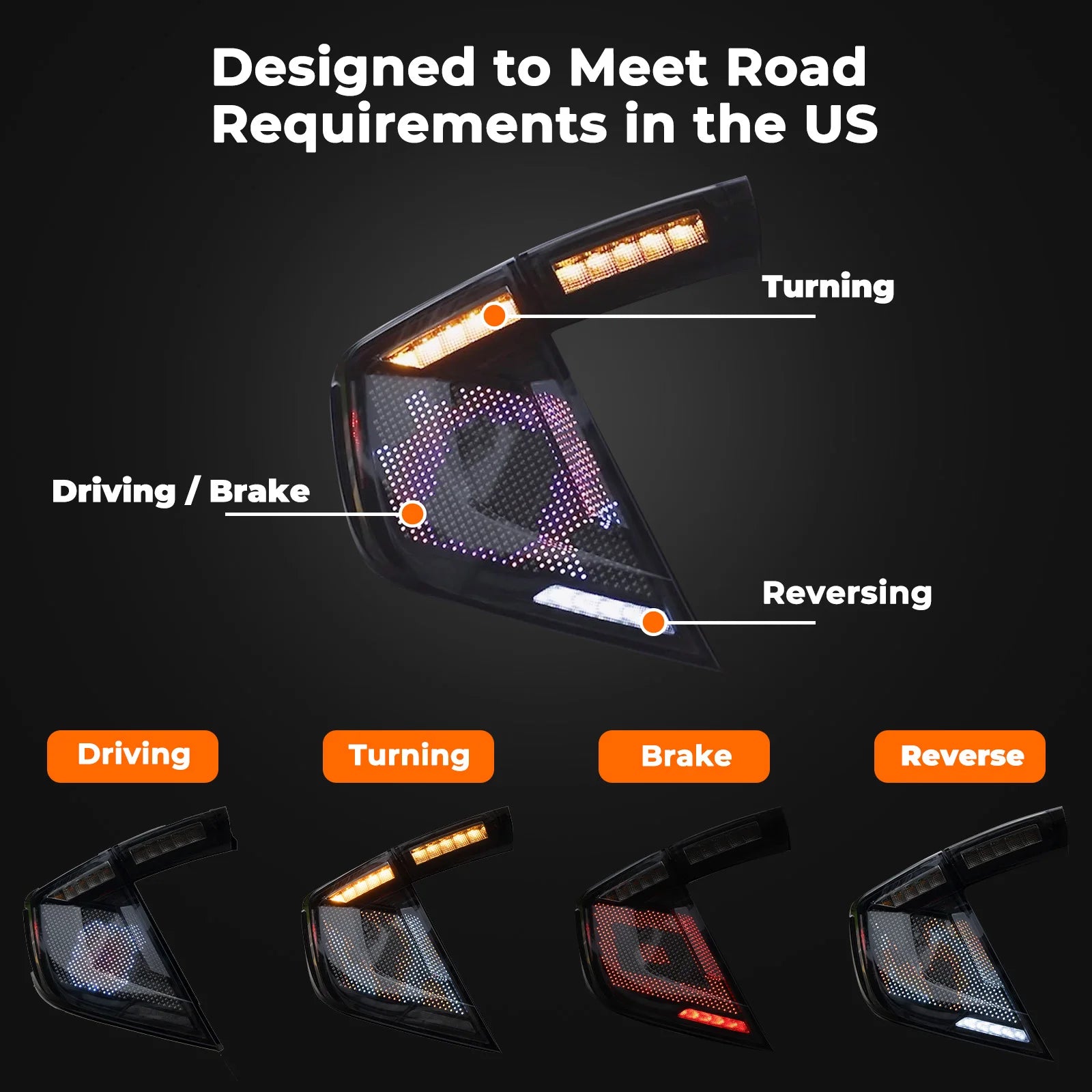 PrismBeam | 2016-2021 Honda Civic 10th Hatchback Digital LED Tail Lights Set