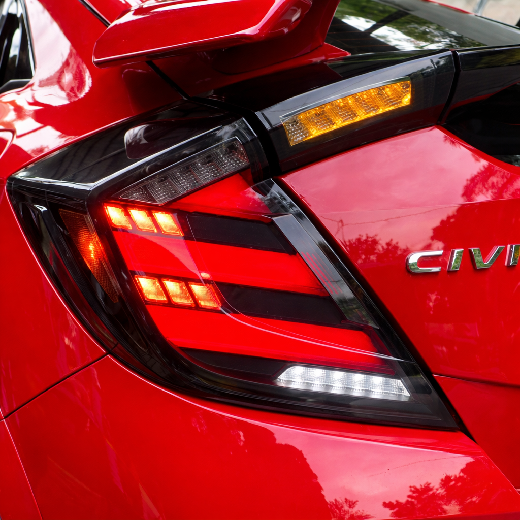 PrismBeam | 2016-2021 Honda Civic 10th Hatchback LED Tail Lights Set Smoke Red