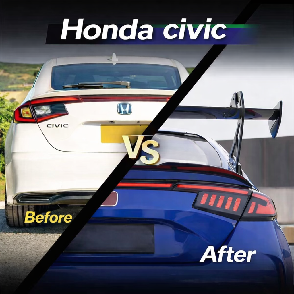 PrismBeam | 2023-2025 Honda Civic FL5 Hatchback LED Tail Lights Set Smoked Red