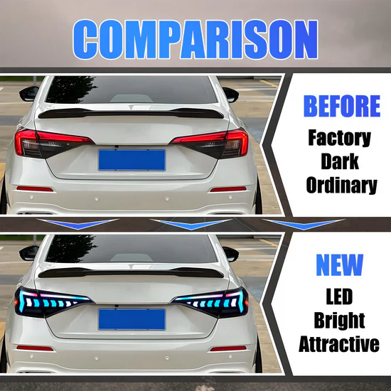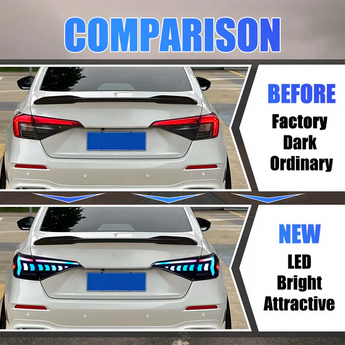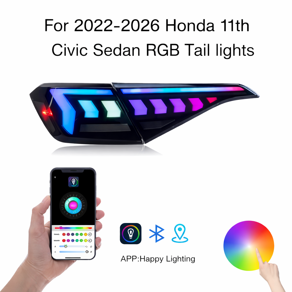 Transform the rear of your 2022–2026 Honda Civic (11th Generation) with Prismbeam RGB LED tail lights, designed for drivers who want maximum personalization without sacrificing daily usability. Built as a direct replacement, these tail lights integrate seamlessly with the Civic’s modern design while introducing fully customizable RGB lighting.
