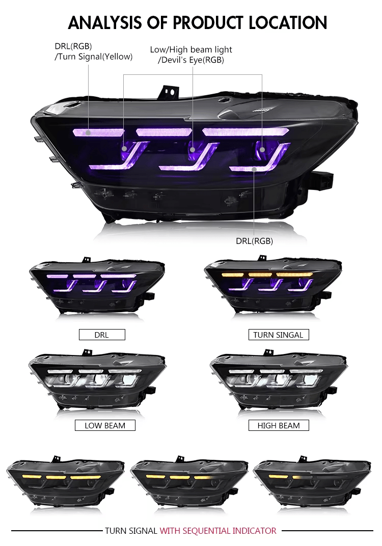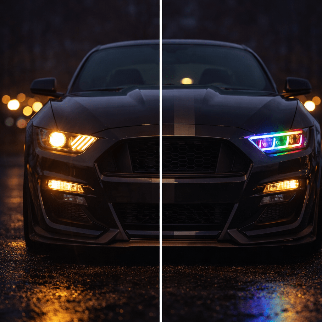 Upgrade your Ford Mustang 2015-2017 with PrismBeam RGB LED headlights for a cleaner look and brighter, more modern lighting.