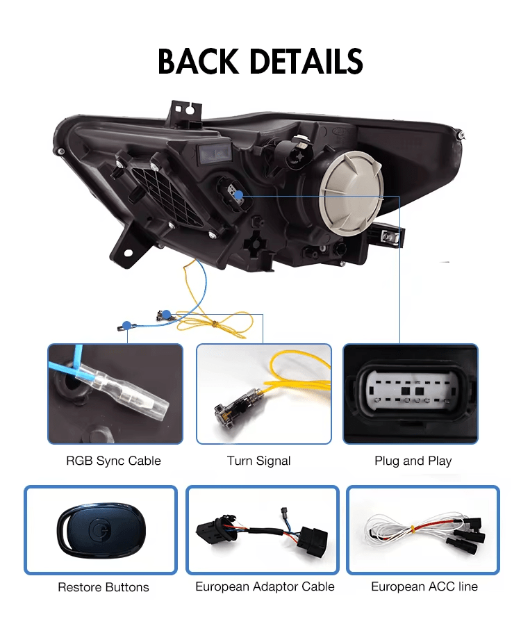 15-17 Ford Mustang RGB LED Projector Headlights Assembly