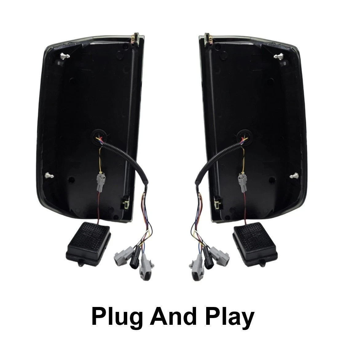 One pair of tail lights (left + right), all mounting hardware, and plug-and-play wiring connectors.